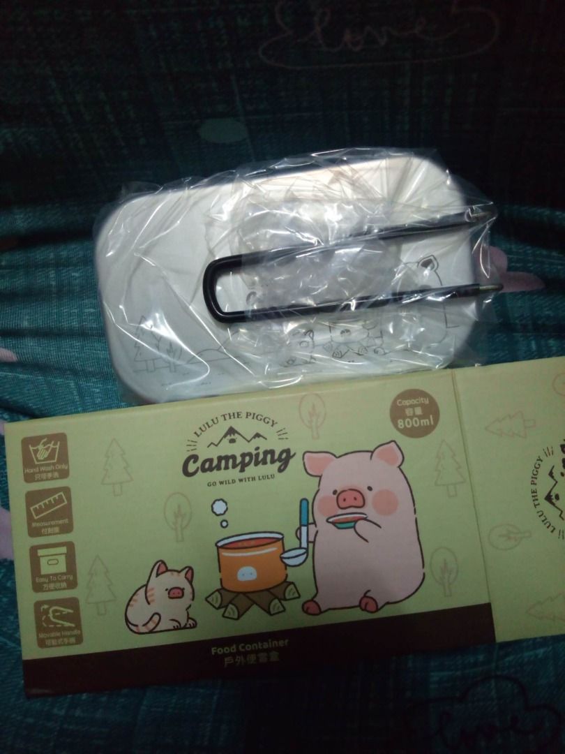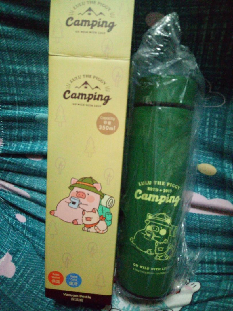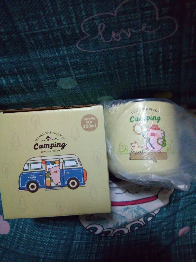 LuLu豬露營用品套裝( 露營戶外水杯、便當盒、保溫瓶、毛巾、束髮帶)