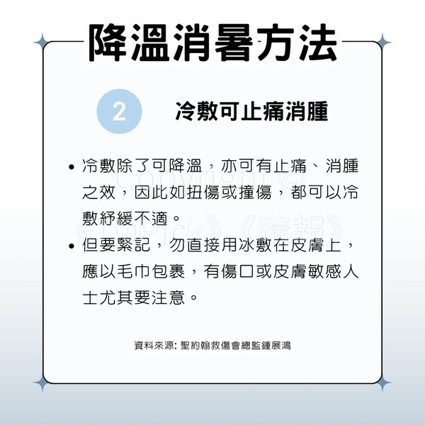 TOPick過往訪問過聖約翰救傷會總監鍾展鴻和消防處救護員會總幹事屈奇安,分享降溫消暑的秘訣。