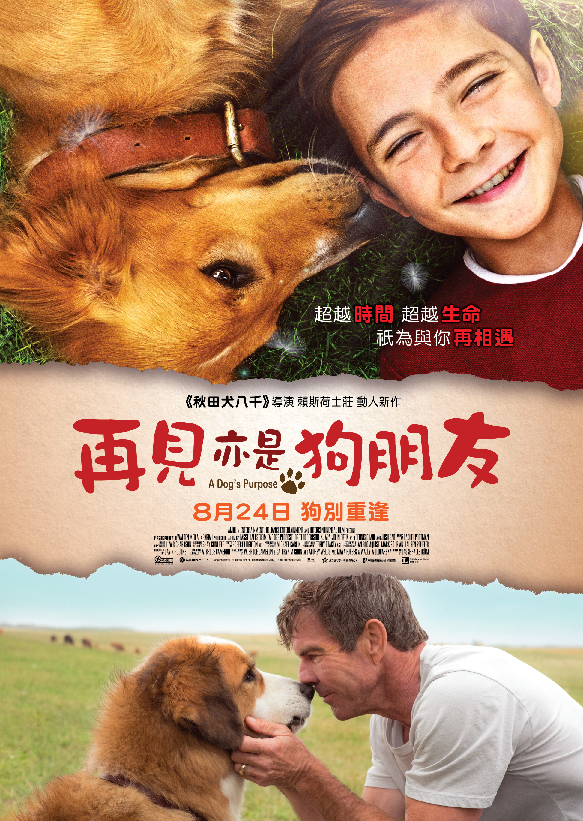 電影簡介 超越時間 超越生命 祇為與你再相遇 繼《秋田犬八千》(Hachi:A Dog's Tale)後,金像提名導演賴斯荷士莊(LasseHallström)再為觀眾帶來以狗狗為主題的動人新作《再見亦是狗朋友》(ADog'sPurpose)。電影改編自2010年出版的同名《紐約時報》暢銷書榜冠軍小說。該小說以溫暖幽默的口吻,講述狗對人的看法以至對生命的理解;長踞榜上超過一年,更被翻譯成20種語言,暢銷全球29個國家。原著作者布魯斯卡梅倫(W.Bruce Cameron)今次親自擔任編劇,向天下喜愛毛孩的人送上這份窩心的禮物。