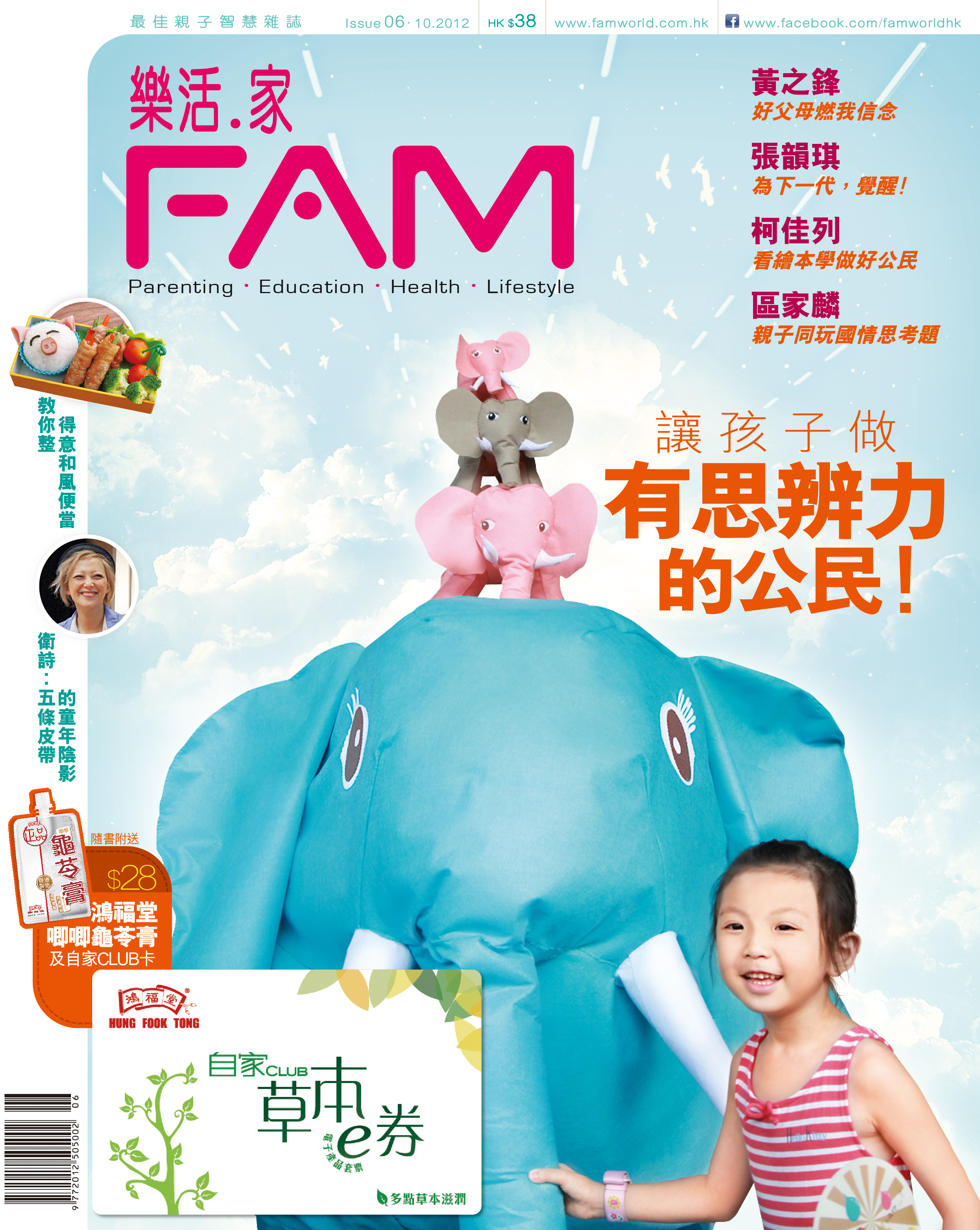 全港最佳親子智慧雜誌FAM《樂活.家》,內容涵蓋教養、健康、樂活、學習及視野,趣味與實用俱備,更網羅全港最具識見的教養、健康及樂活生活專家,致力為關心下一代成長的父母,提供更具識見及多元視野的育養資訊。