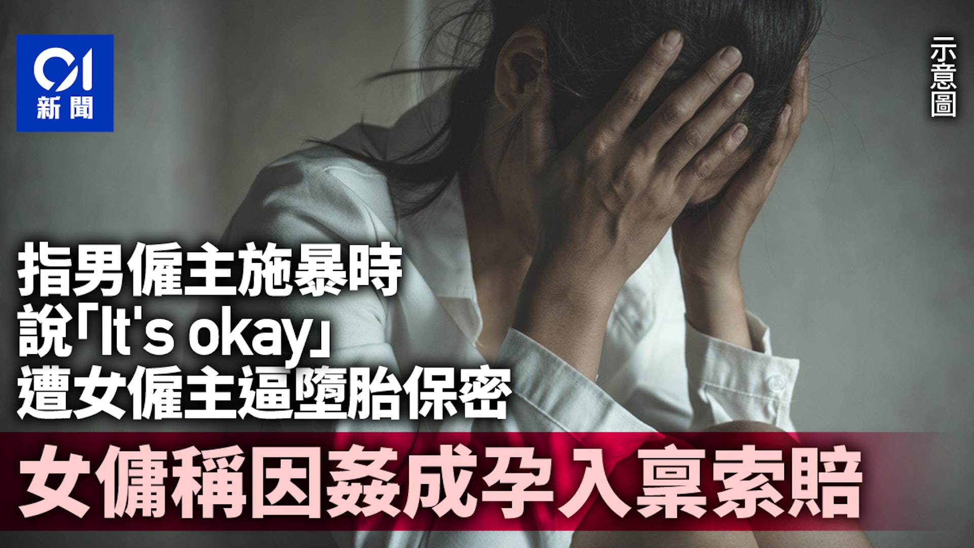 外籍女傭聲稱她在元朗為一家庭作傭工時,多番遭男僱主性侵,後更因姦成孕,女僱主知情後要她墮胎並保密事件,女傭最後離開並誕下女嬰。她後來曾報警,男僱主亦一度被控強姦等罪,惟最終獲撤控。女傭認為男僱主違反《性別平等歧視條例》,昨(16日)入稟區域法院控告男僱主,並就她在感情損害、收入損失、求診婦產科及生產後支出等損失索償。