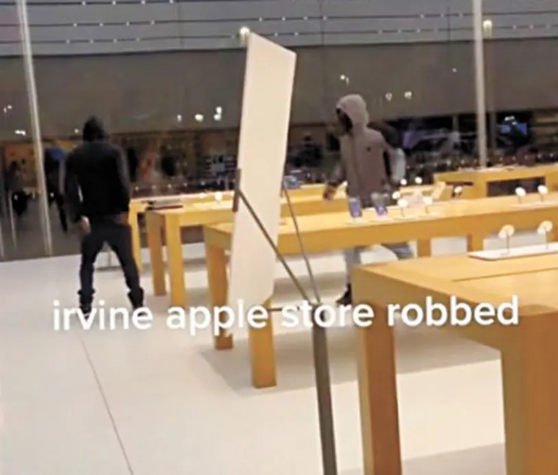 據當時在現場的民眾在Reddit網站分享的視頻顯示,在傍晚天色已黑,臨近下班時分,兩名分別身穿黑色和灰色衛衣的蒙面男子突然闖進位於爾灣光譜中心的「蘋果專賣店」。店內的顧客意識到兩名蒙面男子來者不善後,紛紛散開,避之不及。只見歹徒在店內繞了一圈,順手拿走展示櫃檯的蘋果電腦等,眾目睽睽下實施搶劫,持續短短幾分鐘後離開。