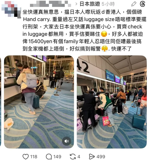 一些人坐廉航如HKEx,以為在禁區內買手信不計,要睇返,每一個機場的登機閘口,職員怎樣處理, 以往經驗,每個七城市,標準不同,有鬆有緊, 我試過攞住4袋東西, 3袋是手信, 排隊入閘登機,被職員攔住, 因登機只可攜帶,一袋手提行李, 不可以超過七公斤,還要放到入行刑架, 我剛有個大垃圾袋 ,4袋放成一袋,便沒有理我, 當然那次是好彩, 當然最好唔好過量, 以免被罰款,加附加費~