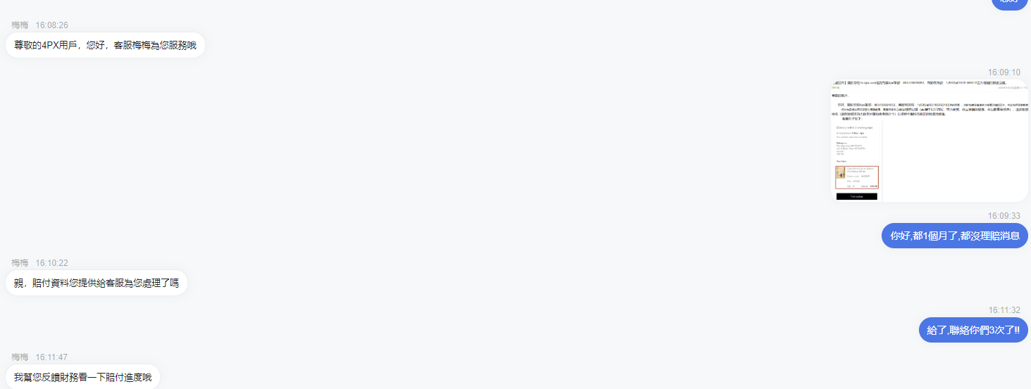 kk2079 發表於 20-2-16 13:23 你之前話賣家有重量證明,所以係4px既問題,但你之後去淘寶claim賣家?? ...