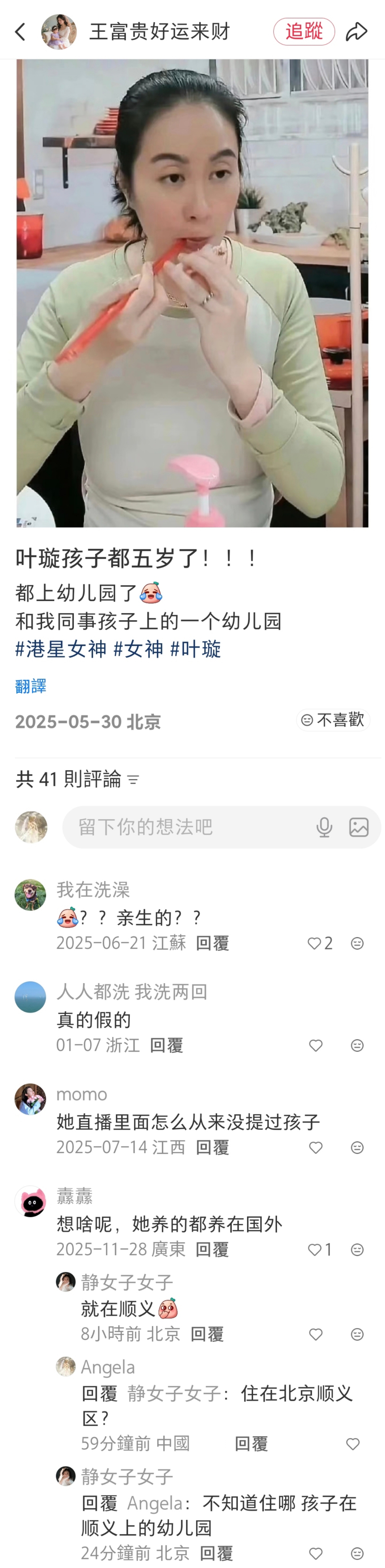 棉花糖姐姐 發表於 25-8-22 10:01 頭先上小紅書,見到有内地人爆料,話前tvb女星葉璇,有個5歲嘅仔,讀緊幼稚園 ...