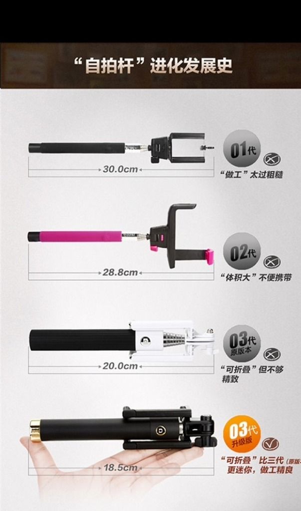 原帖由 麥豬豬 於 15-11-15 發表 我買了這個第三代的自拍杆,因摺得埋,所以比上兩代的短成10cm。 淘宝商品:手机自拍杆韩国 蓝牙自拍杆 苹果 ...