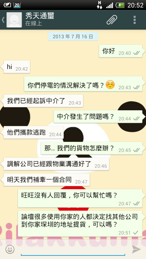 瑤瑤~ 發表於 13-7-16 20:39 我岩岩先知秀天旺旺有人0係度睇 因我頭先都旺旺send左委托通知比秀天及通璽a/c 秀天a/c覆我d貨在荔枝角