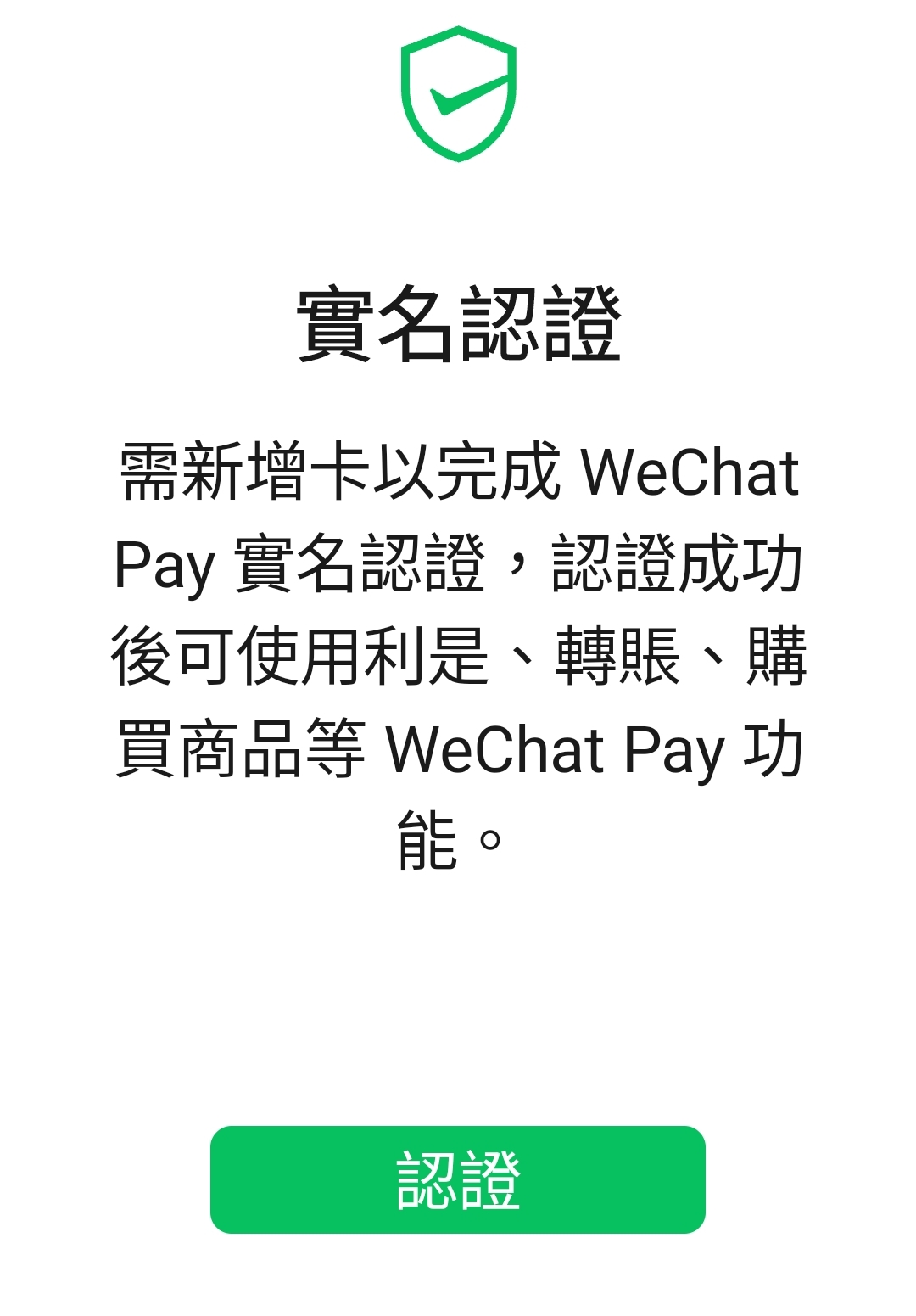 gdybxx123 發表於 23-8-26 14:38 唔知點解今日買野用微信支付要新增卡實名認證 上個月買野都冇彈呢個野出離 已經做左身份認證