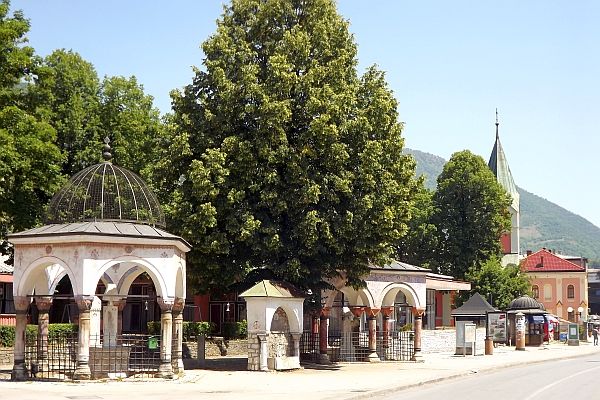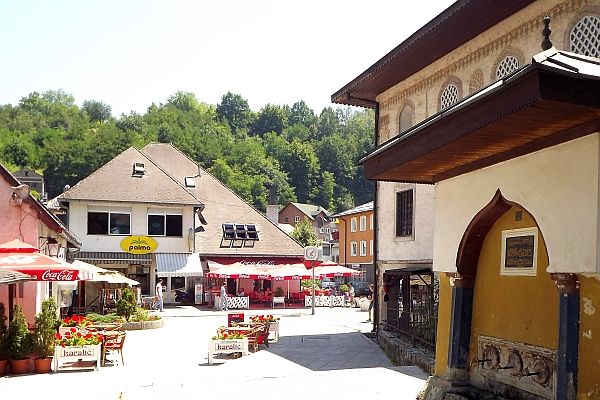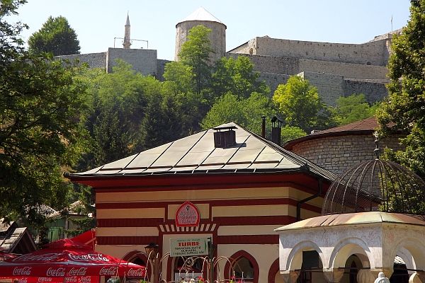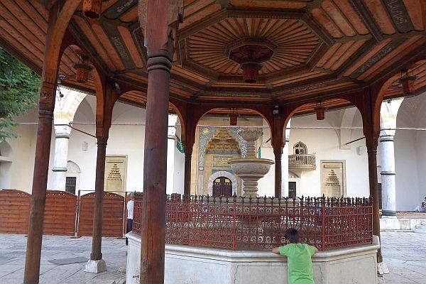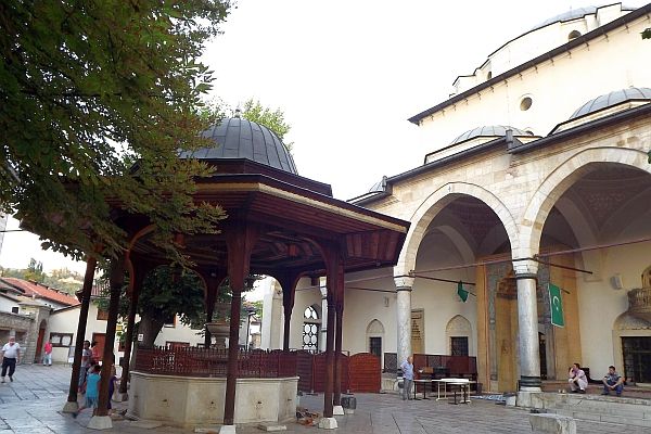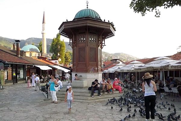 我們來到Baščaršija,這裡從前是舊市集(old bazaar) ,建於15世紀,是薩拉熱窩的傳統和文化中心,有不少歷史建築物,現在是最熱門的旅遊點.Baščaršija是土耳其文,"baş" 解作最主要,"čaršija" 是市集.我訂的Guest House Ćiro (網址:http://www.guesthouseciro.com.ba/) 在舊市集的小山坡上,其實離電車站不遠.我們下車後往山上有三條路走,我挑了其中一條,是錯的,我們拖著背著行李在塊塊突出的石頭路上很不好走,又要走入小巷.後來有人幫忙帶我們去,走過一次後就以後就容易了.