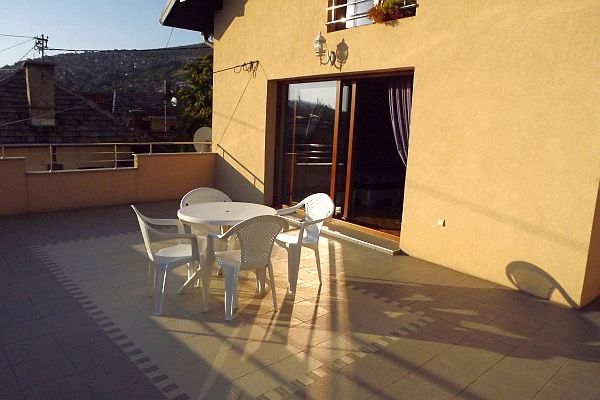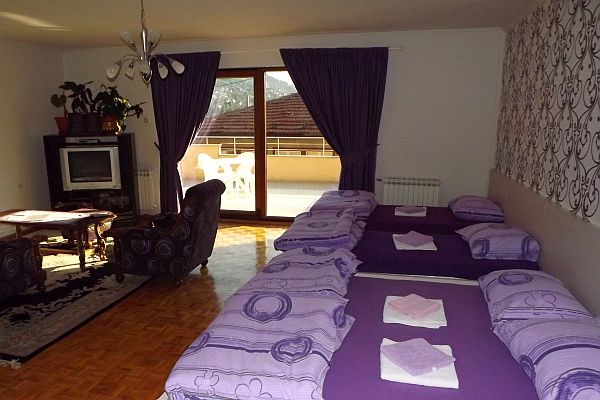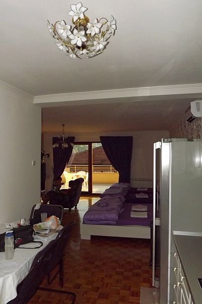 Guest House Ćiro網上評價很高,我訂的是4人房,在網上看到房間的照片就決定住那裡.房間有陽台,大得可放4個燒烤爐,床鋪被枕、梳化、地氈、窗帘,全都是不同層次的紫,連窗外的花也是紫的。廚房有四頭電磁爐、大焗爐、洗碗碟機、冰箱連製冰機,非常整潔,只是洗手間要和隣房共用。其他房間大多自己有浴室,但不及我們住那間房豪華.