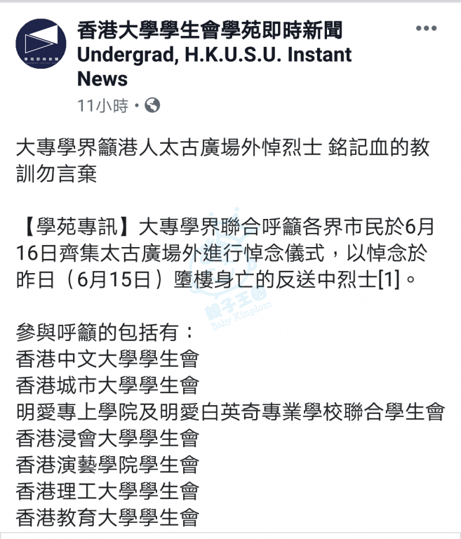快D上港大FB說教啦, 聽日媒體就會見到好多烈士字眼
