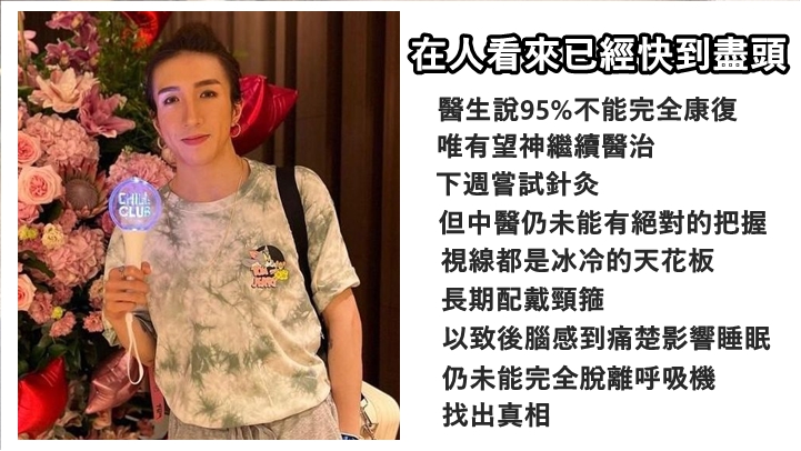 信中又指,因疫情影響,李啟言須轉至另一深切治療病房,另需要長期配戴頸箍,以致後腦感到痛楚影響睡眠,現時仍未能完全脫離呼吸機。