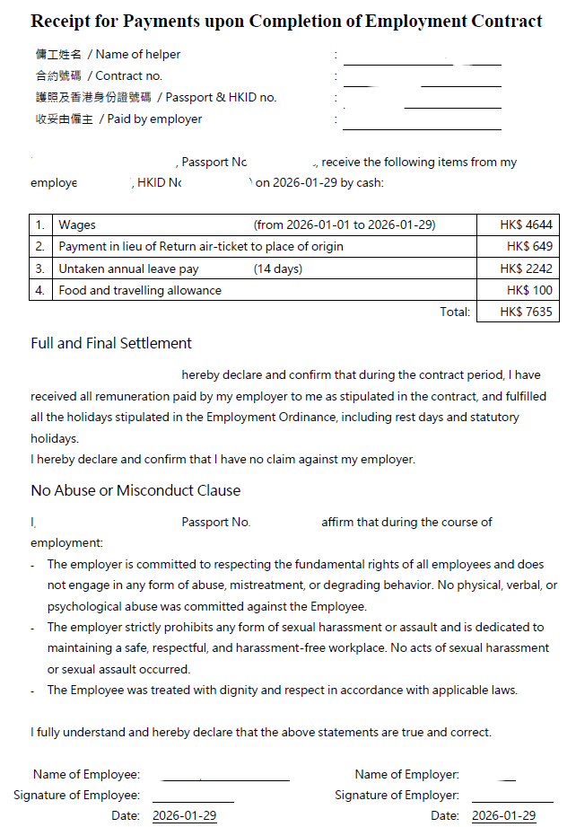 馮盈盈死忠 發表於 26-1-22 11:47 最終版本! 請問各位,這樣的文件是否一式兩份給工人姐姐簽署就可以? ...