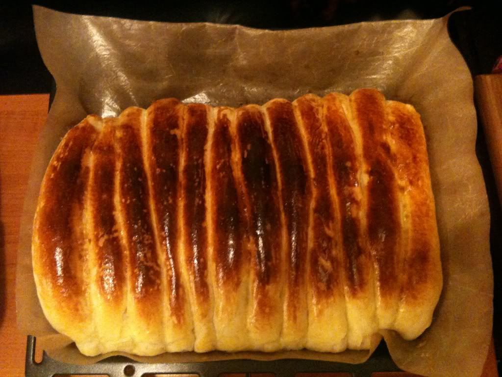 另外, 個排包主要改左...CREAM 65G, 糖18G, YEAST 3G, 但練奶多左D ..19G, 牛油37G, 奶60G, 無奶粉,老麵, 牛油想減半,不過一落刀切牛油就37G, 所以用埋佢....