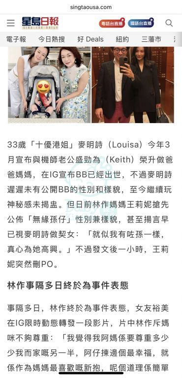 cacandy 發表於 25-6-20 14:57 麥明詩的BB正面樣貌早前被林作母親王莉妮( Lily)上載到社交平台公開,引起網民批評,之後裕美在本月初接 ...