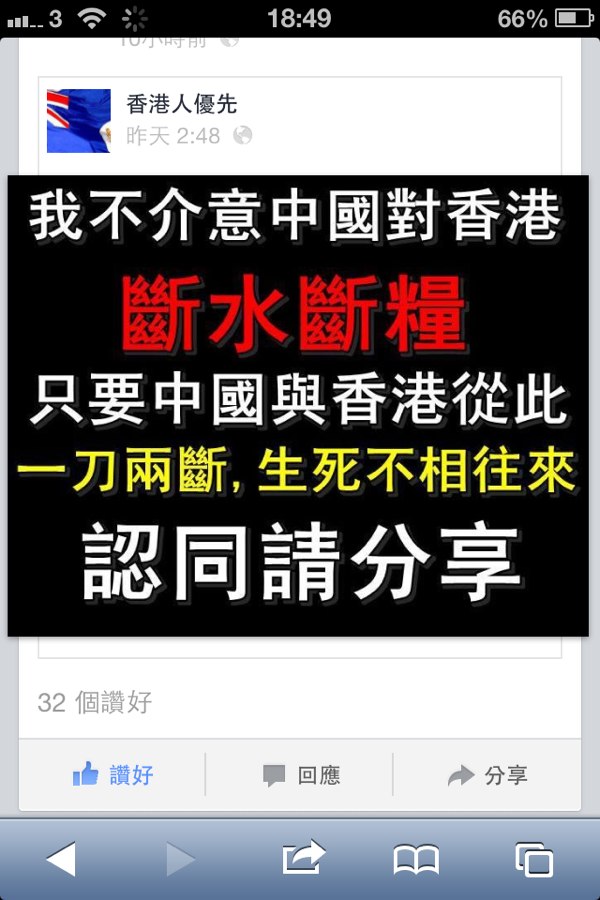 不過,當到咗斷水斷糧果日,中國必定軍事封鎖所有航運同空運,屆時所有進口貨都唔會出現。亦都唔會有外國艦隊夠膽做架兩。係分裂問題入面中國輸唔起,畀得你獨立成個中國會四分五裂,到時仲亂過春秋戰國同中東。中國必定用儘所有軍事力量去搞掂你。希望樓主能夠同七百萬港人共渡時艱,唔好移民走人,同我地一齊等死…