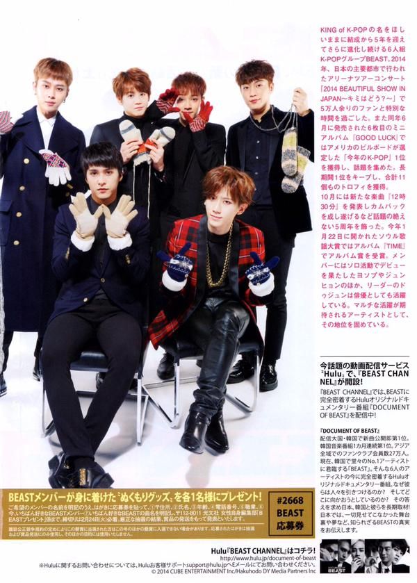 一直以“King of K-POP”的称号为目标,自出道以来的5年不断进步的6人组K-POP组合BEAST,2014年,在日本主要城市召开的巡回演唱会“2014 BEAUTIFUL SHOW IN JAPAN~你如何?~”中和约5万名Fan们一起度过了特别的时间。另外,以同年6月发表的第六张迷你专辑“GOOD LUCK”被美国billboard列为“本年度K-POP”1位,引发话题关注。长期维持1位,总计获得11个冠军。