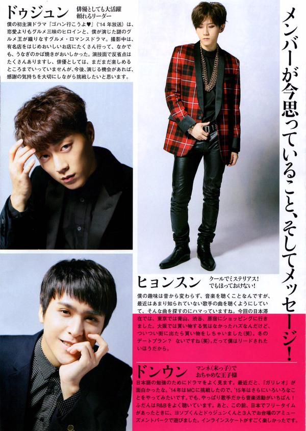 10月则以发表新曲“12点30分”回归等活动再次引发热议而为出道5周年锦上添花。今年1月22日召开的首尔歌谣大战上“TIME”获最佳专辑赏。成员中除已实现solo活动出道的耀燮和俊亨之外,队长斗俊也作为演员活跃着。以值得期待的多样活跃面的Artist的身份,坚守他们的地位。