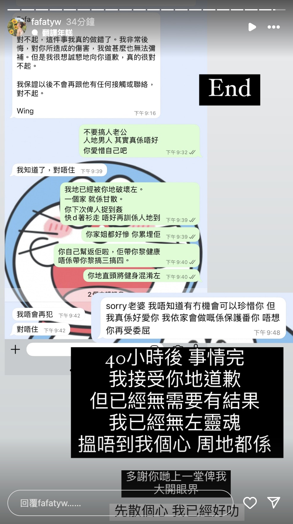 SUMMER581 發表於 25-2-26 03:25 賤男女已同大婆認錯,賤男仲話好愛大婆,唔知有冇機會珍惜佢,希望大婆唔好心軟 雖然冰係無辜,但難聽講 ...
