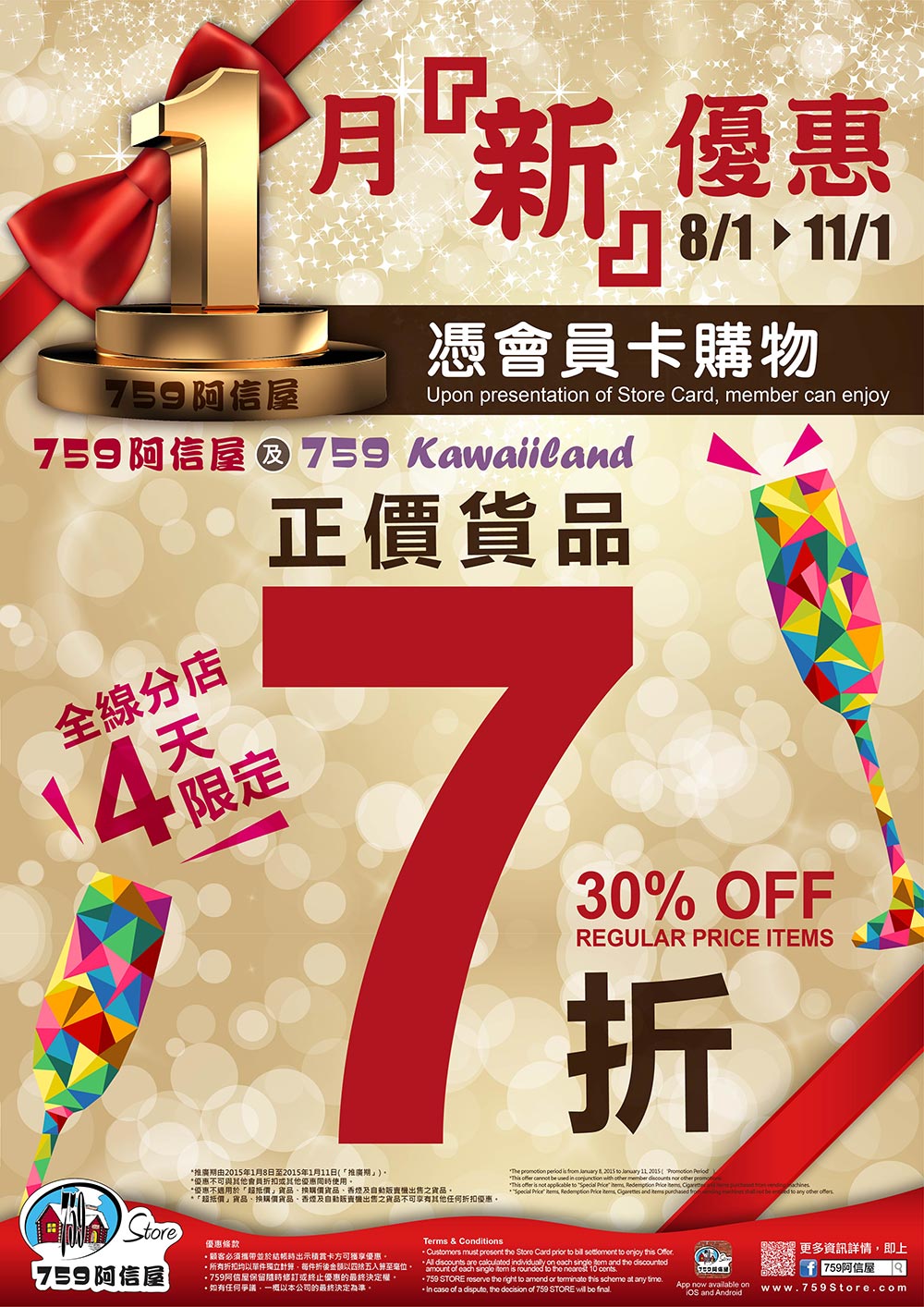水晶樹媽媽 發表於 15-1-7 18:53 明天又七折 唔係以後都係 888