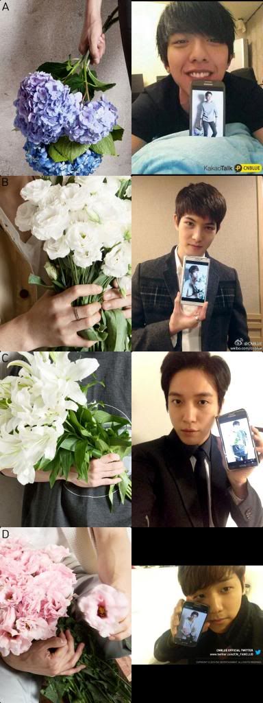 近日,在CNBLUE官方Facebook上,为纪念BEST专辑《Present》的发售举行了“猜手”惊喜活动。官方上传了拿着花的四位成员的手部照片,让大家来猜各照片的主人公是谁。