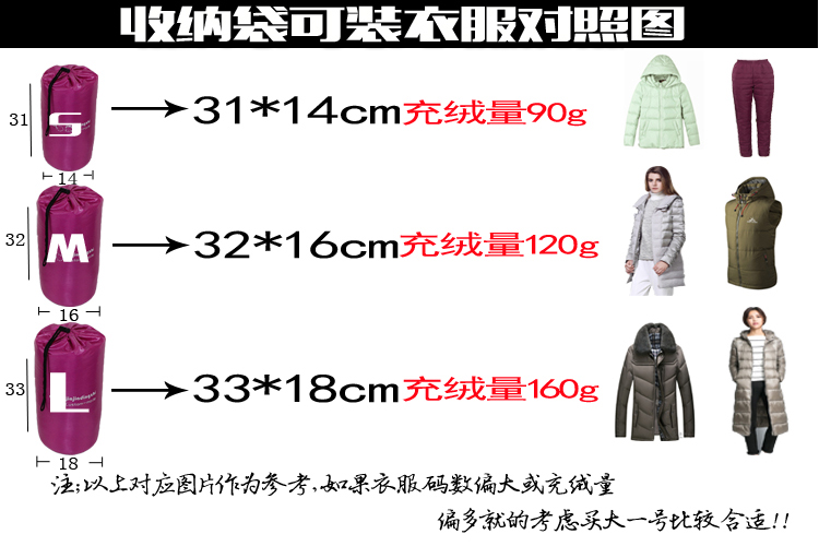 中号可以放成人轻薄型羽绒服