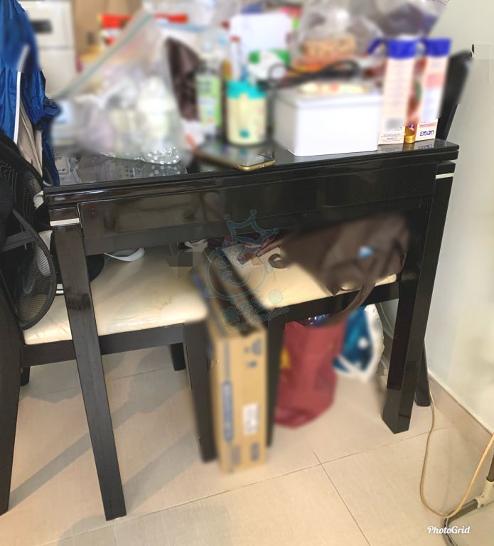 黑玻璃面餐枱連四張餐椅。