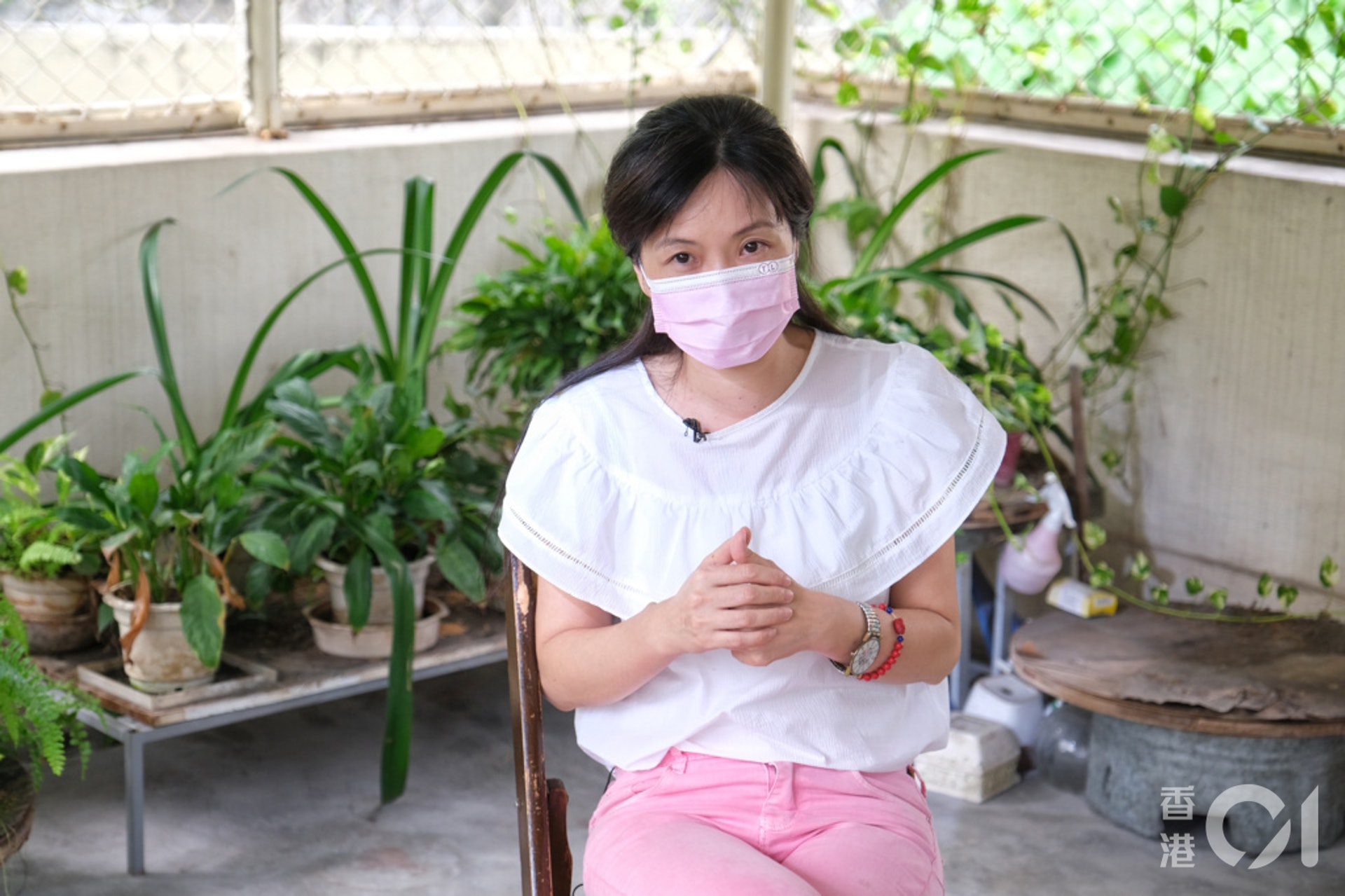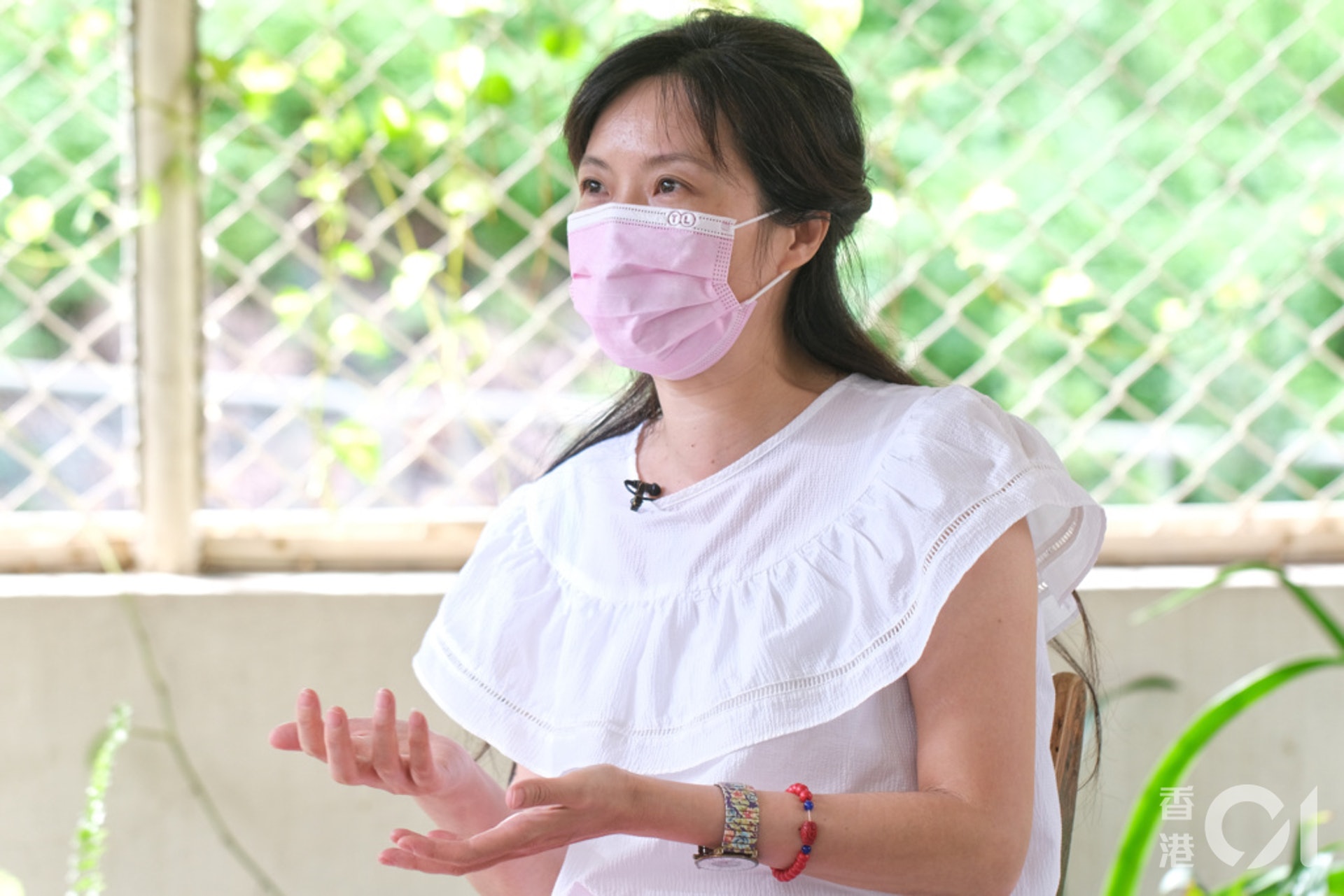 疫情期間,不少人倦怠,戴上口罩後便不再化妝,施麗珊卻不是如此。淡妝不改之餘,口罩亦成了新的配飾——粉色的口罩配粉色的牛仔褲,她說這樣比較襯,「我鍾意粉紅色吖嘛,同事朋友出面見到邊度有賣,都會話我知讓我去買,可以襯下啲衫褲。」