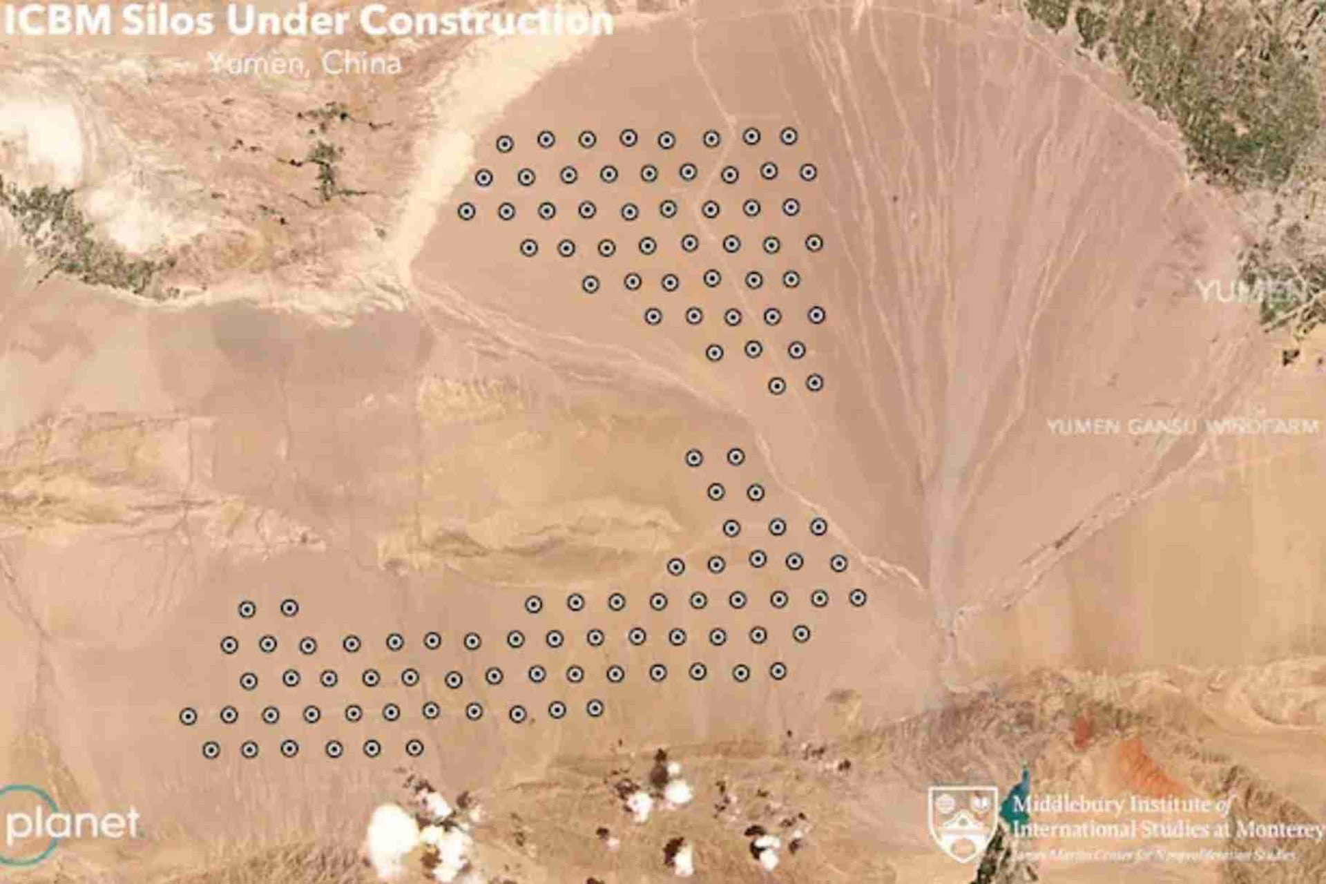 美國「占士馬田禁止核擴散研究中心」(JamesMartin Center for Nonproliferation Studies)藉衛星圖指出,中國已開始在西北城市甘肅石油城玉門附近的沙漠區興建超過100座洲際彈道導彈(ICBM)發射井,稱此舉意味中方正大幅擴展核能力,威懾或抗衡美國。