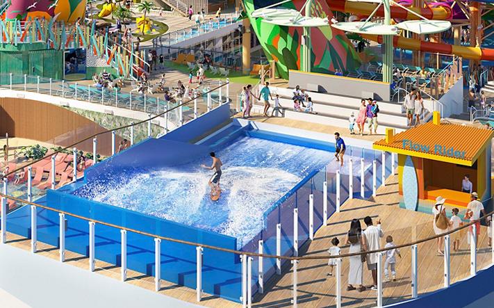 除刺激活動外,郵輪上亦有適合一家大細的「Surfside」衝浪區,此處集合了不同遊樂設施,包括水上樂園、Water's Edge泳池、勁玩遊樂場和旋轉木馬,一次過滿足大人和小朋友!