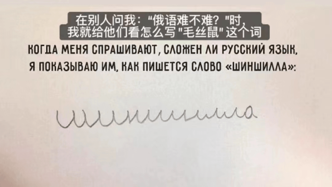 櫺囹桼 發表於 23-11-23 07:48 有人話俄文潦草最難睇... 俄語毛絲鼠(шинши́лла)用正階寫出嚟已經變成咁↑