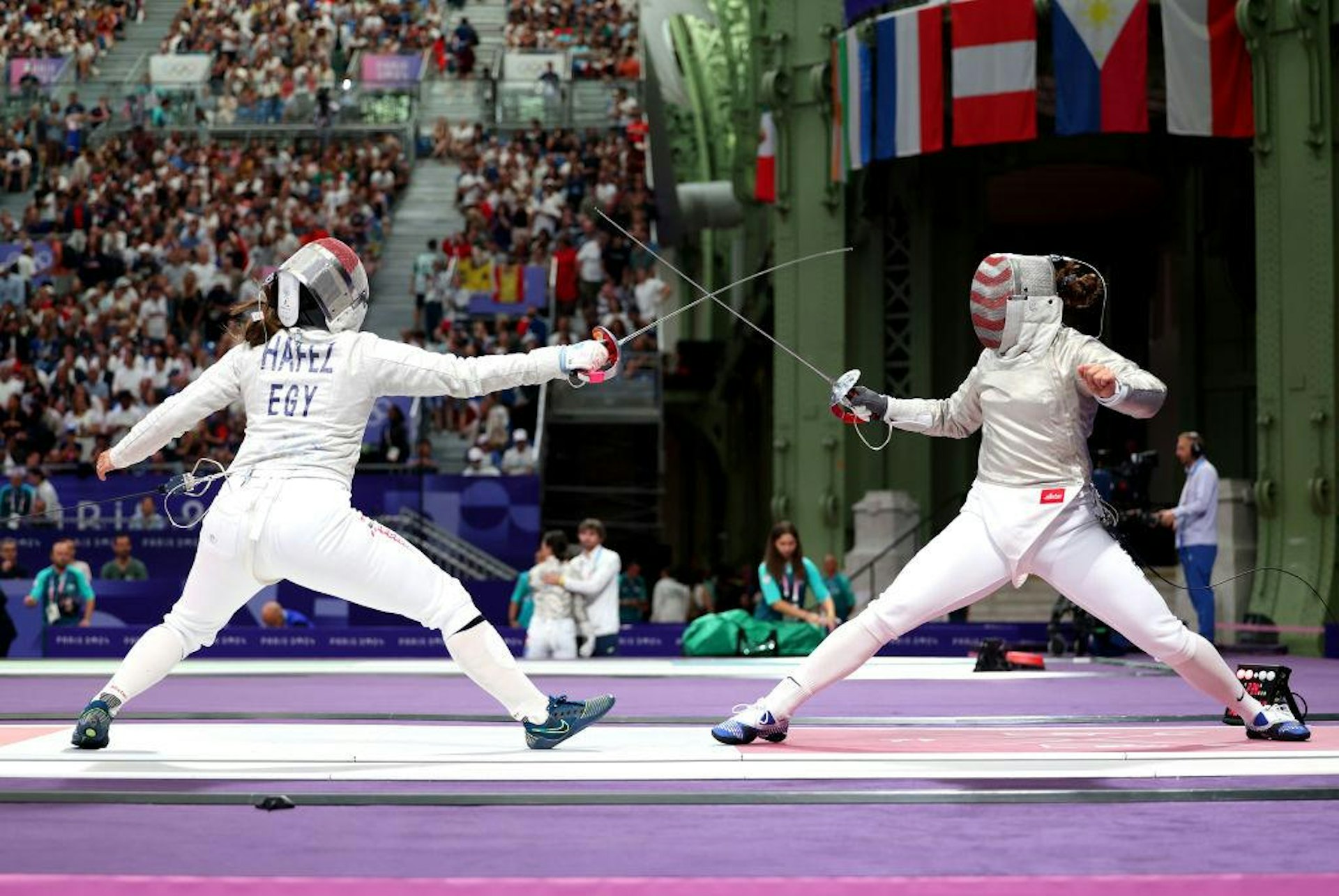 埃及女子佩劍選手夏菲絲(Nada Hafez)昨日(29日)出戰巴黎奧運,在個人賽十六強不敵韓國代表全河英出局。26歲的夏菲絲賽後在社交網站撰文,她是懷孕7個月下出戰,以此成績為自豪,並多謝丈夫及家人信任。
