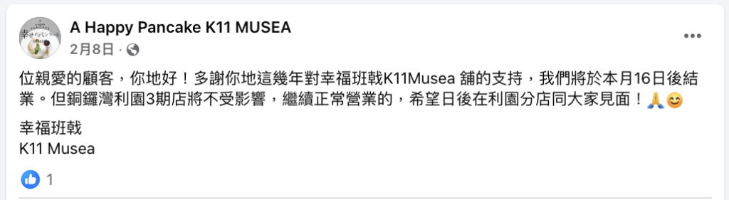 蛋花湯 發表於 24-12-3 16:39 曾在香港紅極一時的日本疏乎厘班戟品牌幸福Pancake(幸せのパンケーキ)(A Happy Pancake) 傳出全線結業 ...