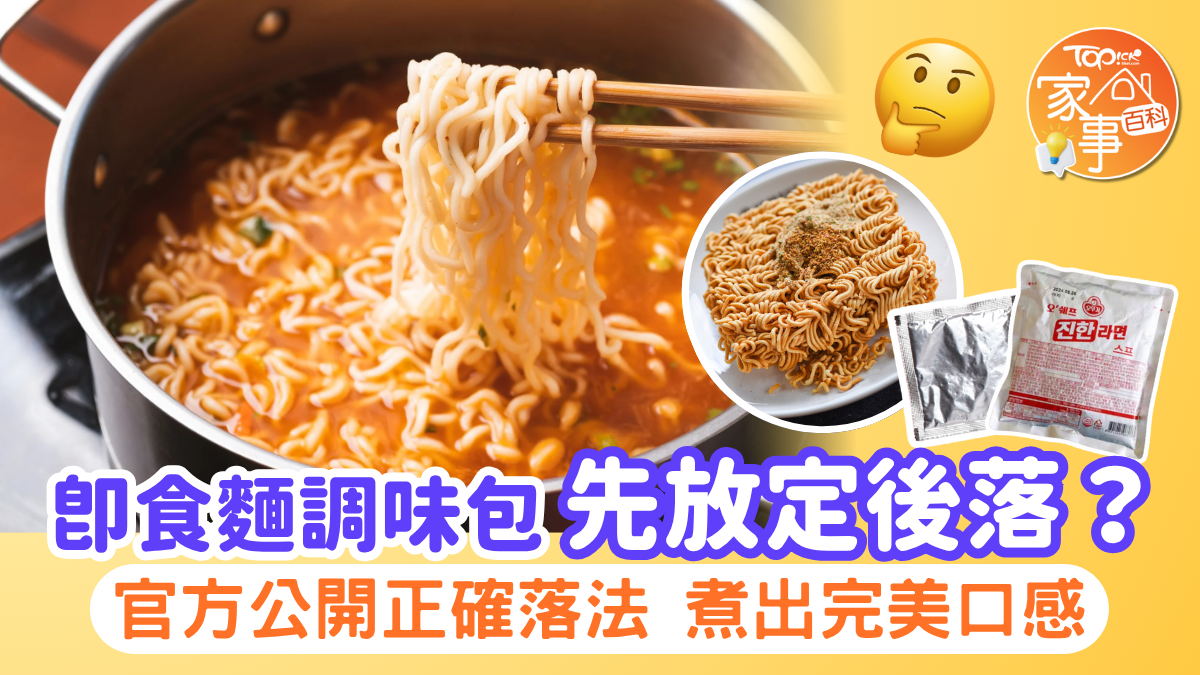 即食麵的煮法層出不窮,有不少人都會爭論調味包是「先放」還是「後加」,日本廠商日清食品就公開正確的調味包使用方式,又強調不同液態和粉末狀的調味料需要在不同時機加入,即食麵才能有最佳口感。