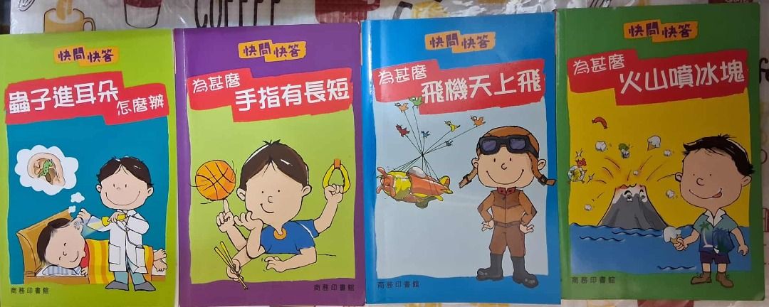 一套快問快答兒童科普書籍,包含多個主題,如火山噴冰塊、手指長短、飛機上飛等。書籍內容豐富,題目有趣,每本附有紅色眼鏡以便觀看每題答案,適合小朋友閱讀。