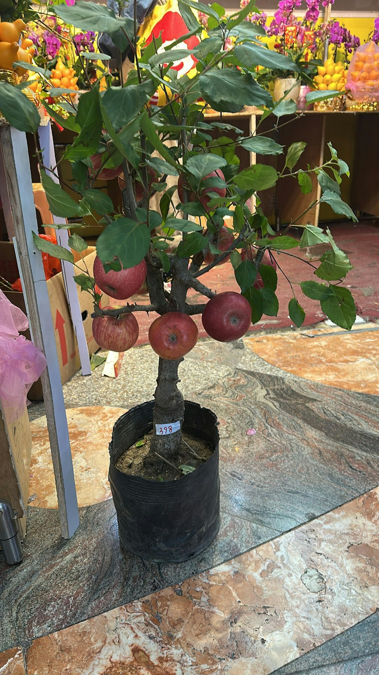 有網民日前行經天水圍1間商場,見到有商店相信是短租,售賣年花和連花盆的蘋果樹,圖中可見,蘋果樹比較細棵,但枝繁葉茂,而且蘋果猶如拳頭般大小,網民心動想買,卻擔心誤買假貨,向女商家「問咗好多次係唔係真蘋果樹」,對方「實牙實齒話係真蘋果樹」,網民認為「依家高科技出現,好多嘢都會覺得合理」,信以為真才願付300元購買。