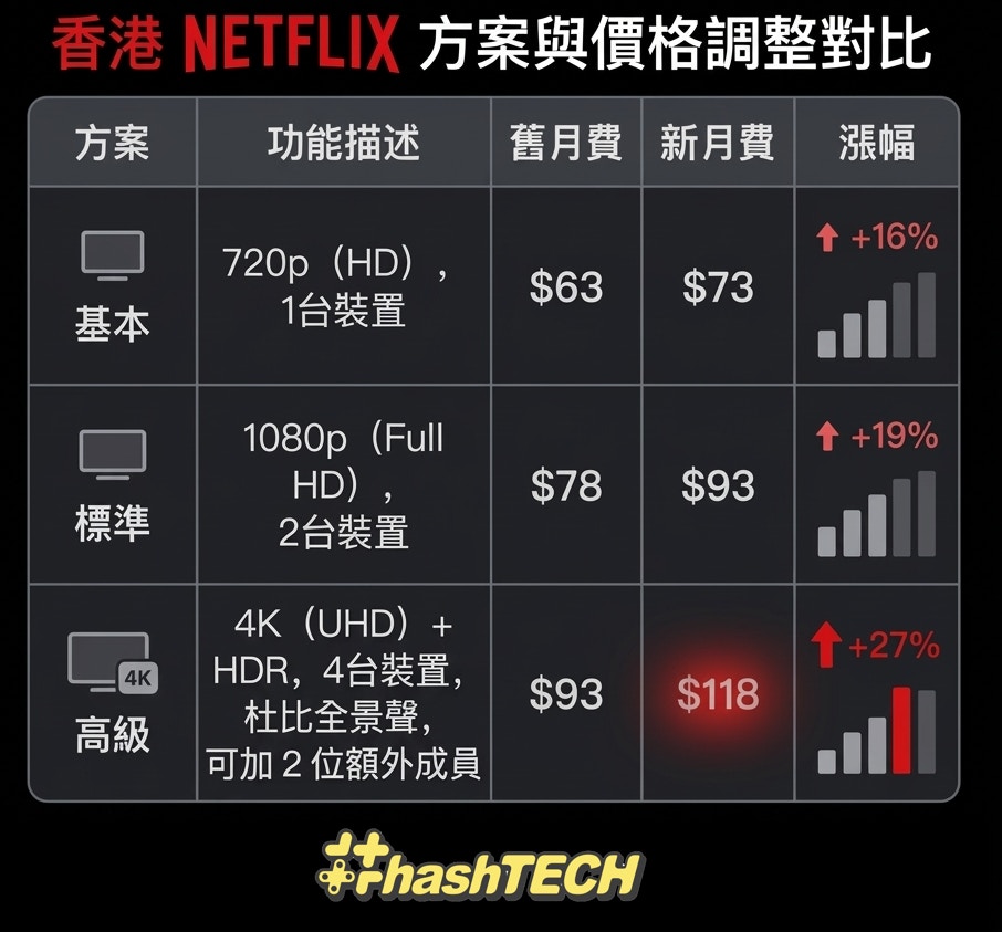 星洲炒米 發表於 26-4-10 09:02 Netflix香港加價2026!三大方案月費齊加.4K月費升至118元|串流影視平台巨頭 Netflix 再度宣佈調整香港區 ...