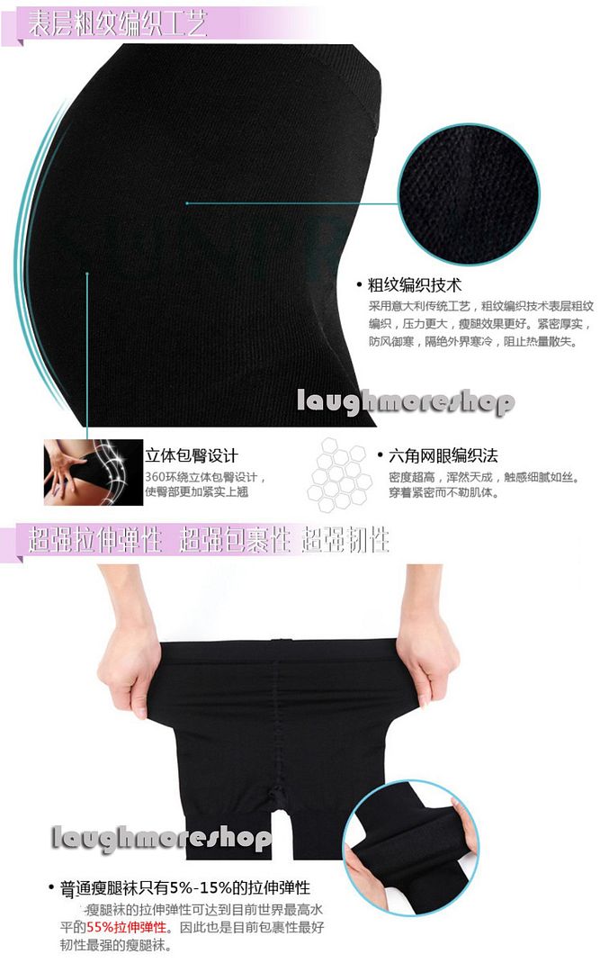 意大利真跟(腳踭)瘦腿襪是很緊的,對腿型有説明,工廠採用意大利設備專業製作的襪子,真跟設計以及均勻的分段壓力,和很多工廠普通襪機製造的假後跟瘦腿襪完全不同,真跟瘦腿襪能促進血液迴圈,促使血液回到心臟,長時間的穿在身上不會有不適的感覺。上身穿起時比較緊,但穿上只有走路,長期站立,會有舒適的感覺,不會覺得很疲勞。